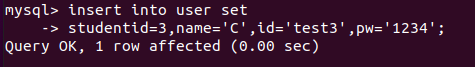 - 컬럼명과 입력한 데이터의 순서와 개수가 일치해야 함