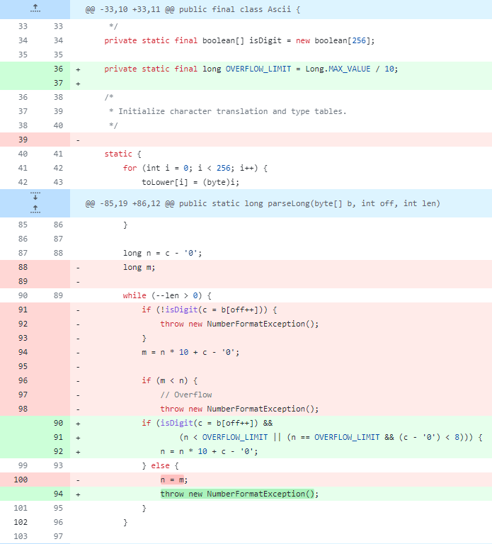 - 해당 취약점은 java/org/apache/tomcat/util/buf/Ascii.java 패키지에서 발생함